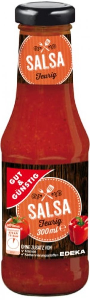 Složení: voda, 24% koncentrovaný rajčatový protlak, cukr, vinný ocet, 7% rajčata, 4,5% cibule, 4,4% paprika, modifikovaný škrob, sůl, 1,15% jalapeňo papričky, chili, bylinky, zahušťovadlo: xanthan; koření, potravinářské barvivo: extrakt z červené řepy; kyselina citronová.
