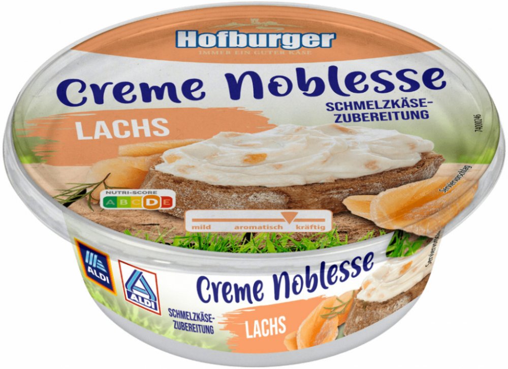 Smetanový sýr lososIngredience:Složení: KRÉMOVÝ SÝR, jedlá sůl.Informace o alergenech :Mléko a mléčné výrobky (včetně laktózy)ALDI Einkauf SE Co. oHGEckenbergstraße 16b45307 Essen (Hauptniederlassung)nutriční informaceV prodejipo 100 g / 100 mlVe srovnání s: smetanovým sýremenergie795 kj(190 kcal)+4 Tlustý16 g+9 Nasycené mastné kyseliny10 g+5 sacharidy3,3 g-1 Cukr3,3 g+6 vlákno?protein7,8 g-9 Sůl0...
