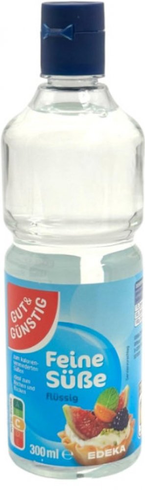 Špička tekuté sladkosti s odměrkou 300 mlNutriční informaceNutriční hodnoty100 gEnergie v kJ 2Energie v kcal 1Tuk0 gz toho nasycené mastné kyseliny0 gz toho mononenasycené mastné kyseliny0 gz toho polynenasycené mastné kyseliny0 gSacharidy0,1 gz toho cukr0,1 gz toho vícesytné alkoholy0 gz toho síly0 gDietní vlákniny0 gProtein0 gSůl0 gSkladujte v suchuAdresa distributoraHanns-Martin-Schleyer-Str. 2, D-77656 OffenburgČistá hmotnost305 g