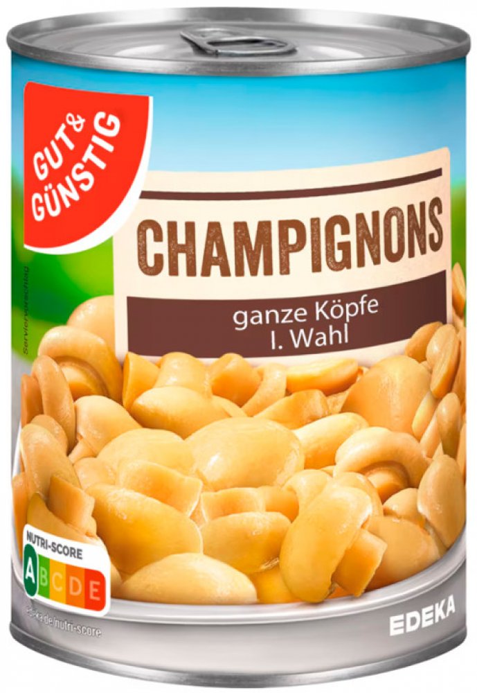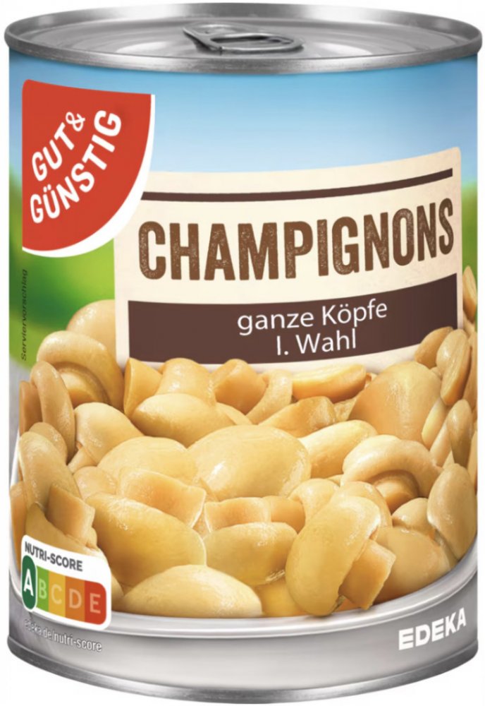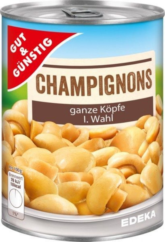 1. volbacelé hlavys ringpullseznam přísadSložení: houby, voda, sůl, okyselující: kyselina citrónová;Antioxidant: kyselina askorbová.nutriční informacePrůměrné nutriční hodnotykaždý 100 ml nebo gna podání RM na 100 ml nebo g nebo na porciVýhřevnost v kJ86,001Výhřevnost v kcal21,001Tuk v g0.50 1Tuky, z nichž nasycené mastné kyseliny v g0.00Sacharidy v g0.60 1Sacharidy včetně cukru v g0.00Vaječné bílé v g2.305Sůl v g0.6010 RM = referenční množství pro průměrnou dospělou osobu (8 400 kJ / 2 000 kcal)Výrobce:EDEKA ZENTRALE AG Co. KGNew-York-Ring 6D-22297 Hamburg