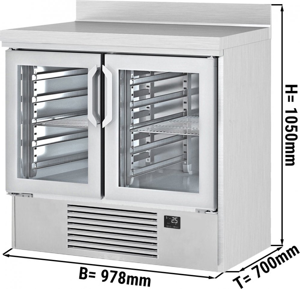 - Barový chladicí stůl se skleněnými dvířky