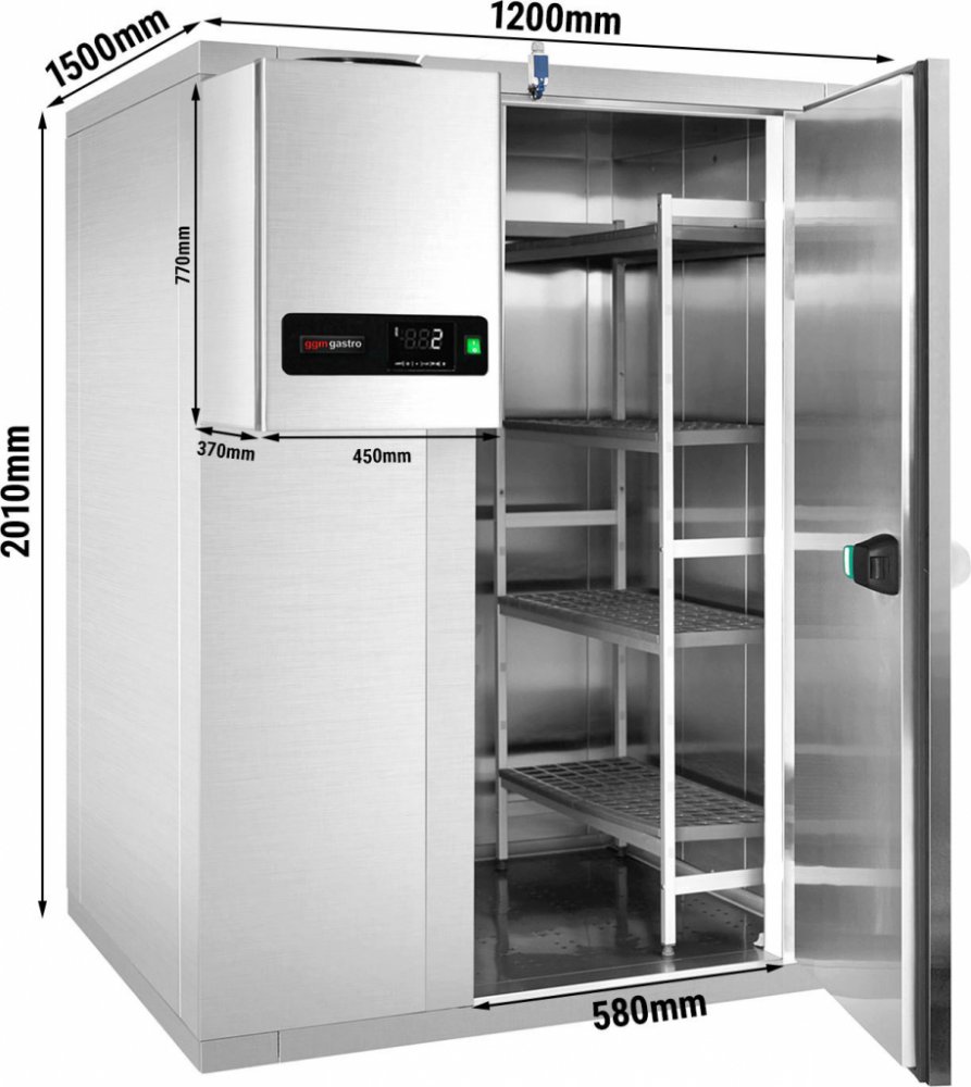 - Jednotka je trvale instalována v panelu pro chladící místnost