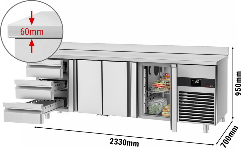 - 1 Chladicí prostor s 3 dveřmi & 3 zásuvkami