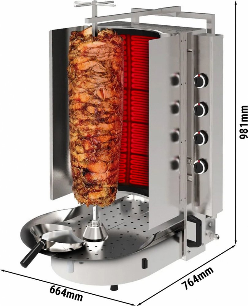 - Plynový gril na gyros/döner kebab s 8 hořáky a sklem Robax
