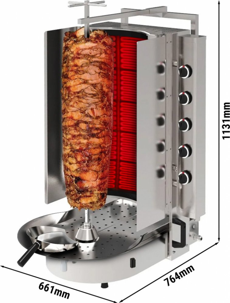 - Plynový gril na gyros/döner kebab s 10 hořáky a sklem Robax