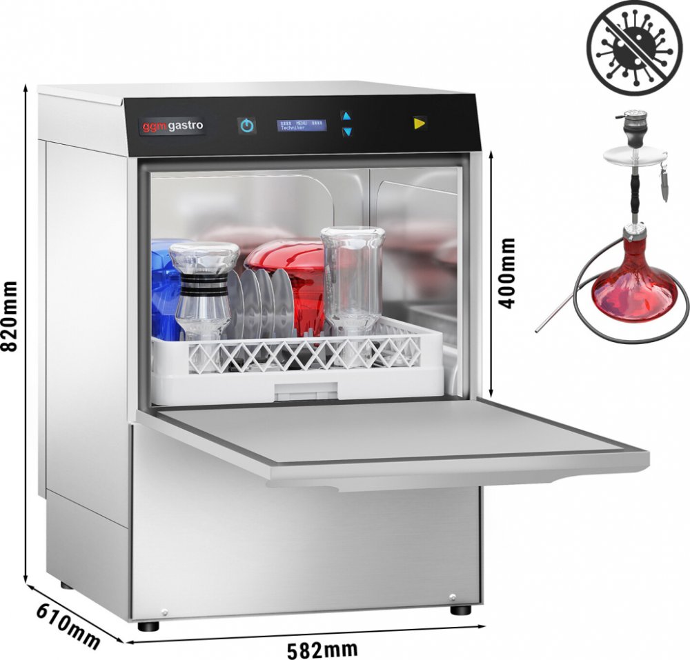 - Naše myčka na shishu důkladně čistí a zajišťujeoptimální hygienu. Díky teplotě oplachování 90 °C jsou bakterie účinně odstraněny, což zajišťuje čistou shishu bez bakterií.