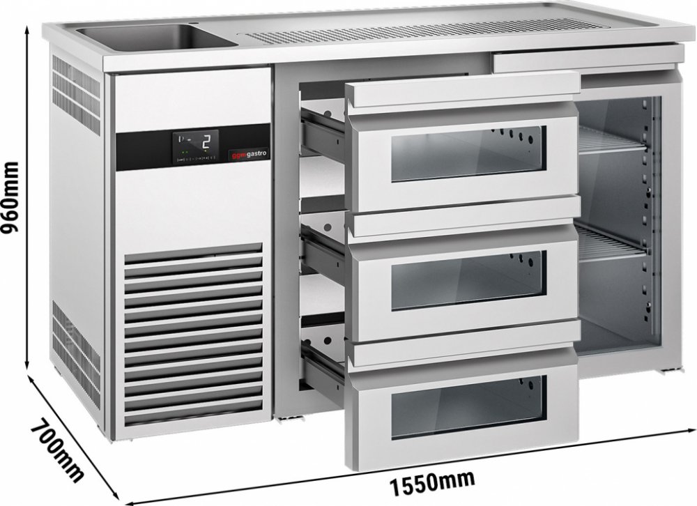 - Außenmaß B x T x H: 1.550 mm x 700 mm x 960 mm