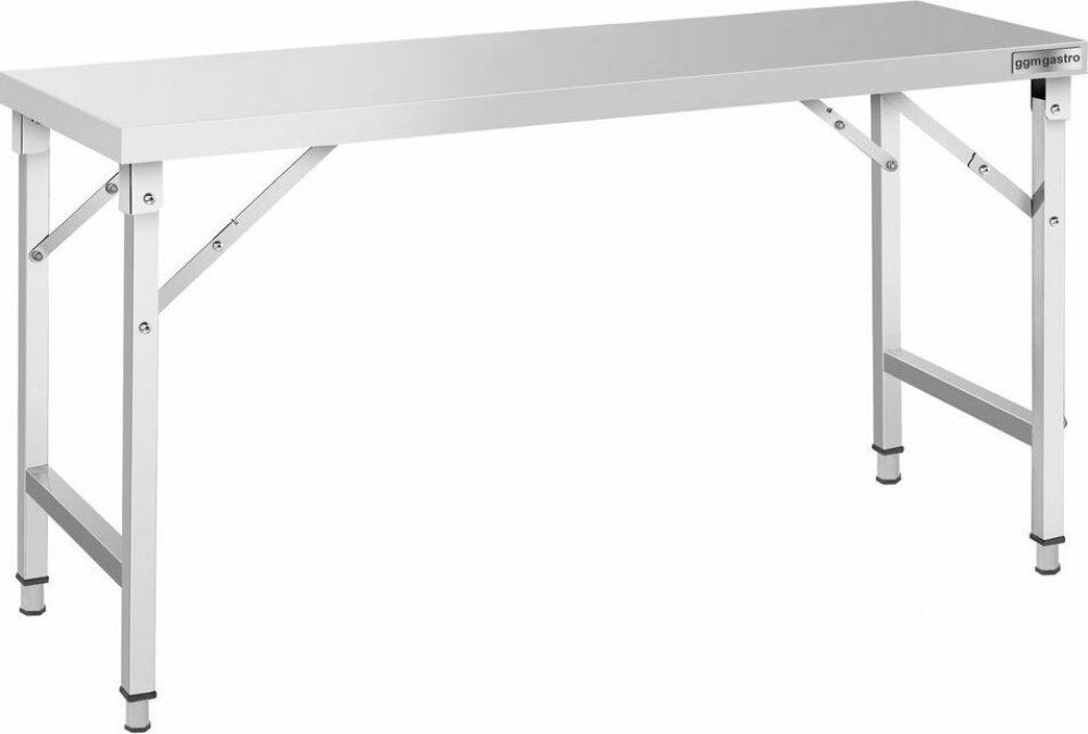 - Flexibilní a mobilní - Skládací pracovní stůl z nerezové oceli - ideální pro restaurace, catering a akce, snadná přeprava, úspora místa při skladování, hygienický a robustní - ideální řešení pro měnící se místa.