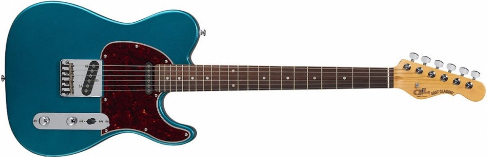 Elektrická kytara Design elektrických kytar G&L Asat Classic představuje poslední slovo Leo Fendera ke klasickému single-cut T designu. Model Tribute ASAT Classic Emerald Blue RW z cenově dostupnější řady Tribute nabízí topolové tělo, přišroubovaný javorový krk s příjemným profilem „Medium C“ a palisandrový hmatník osazený dvaadvaceti niklovými pražci velikosti Medium Jumbo. Dva single-coil snímače MFD (Magnetic Field Design) s keramickými magnety a nastavitelnými pólovými nástavci navržené Leo Fenderem umožňují nastavení výstupu snímače pro každou strunu zvlášť. Snímače zvlášť i v kombinaci nabízí širokou paletu tónů – od vřelých kulatých jazzových tónů po charakteristickou údernost singlů. Charakter zvuku lze upravit pomocí potenciometrů hlasitosti, tónové clony a třípolohového přepínače snímačů. Stabilitu ladění a dobrý sustain zaručuje ukotvení strun v ladících mechanikách s převodovým poměrem 18:1 a přes ocelovou kobylku s šesti mosaznými sedly skrze tělo nástroje. Stylové zpracování podtrhuje pickguard z imitace želvoviny. Značku G&L založili na přelomu 70. a 80. let Leo Fender, George Fullerton a Dale Hyatt. Design elektrických kytar a baskytar s logem G&L tak naznačuje, jak by mohly vypadat nástroje jiné světoznámé značky, kdyby se ji Leo Fender v polovině 60. let nezbavil.