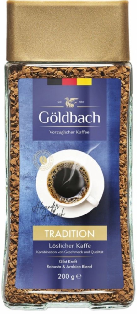 GOLDBACH TRADITION je jedinečná káva káva, vytvořená pro milovníky intenzivního aroma a plné chuti. Je připravena z vybraných kávových zrn a nabízí dokonalou rovnováhu mezi hlubokou, bohatou chutí a jemnou kyselostí. Díky pečlivému procesu lyofilizace si zachovává plnou vůni a svěžest, která se uvolňuje s každým douškem. Rychlá a snadná příprava – stačí zalít horkou vodou a můžete si vychutnat chvilku relaxace. Ideální jak pro ranní povzbuzení, tak pro odpolední odpočinek.