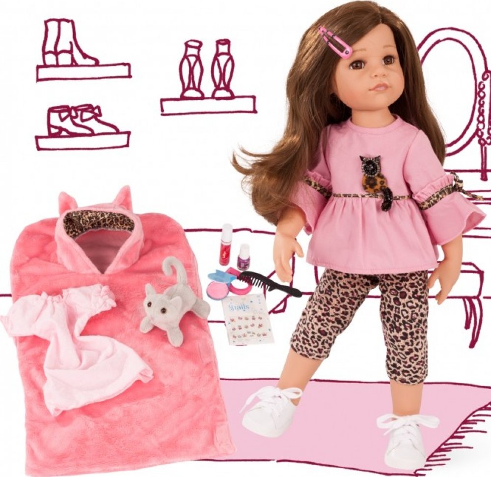 Panenka Hannah s kočičkou a spoustou dalších doplňků.