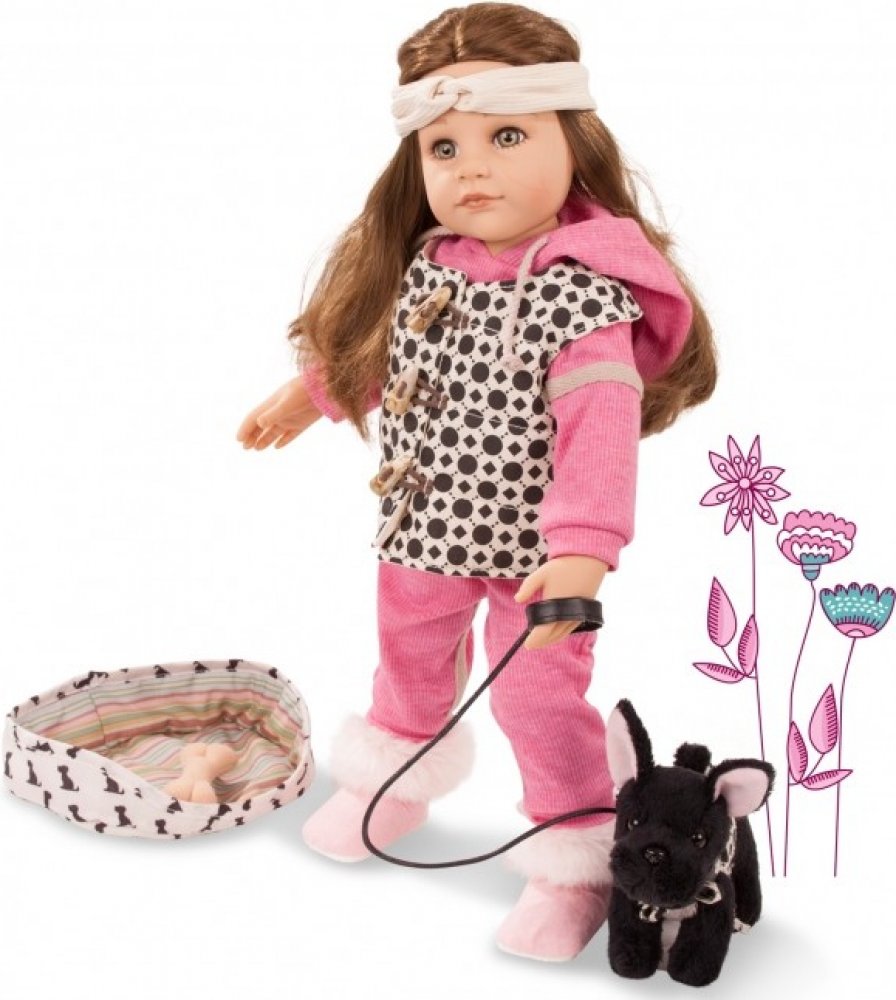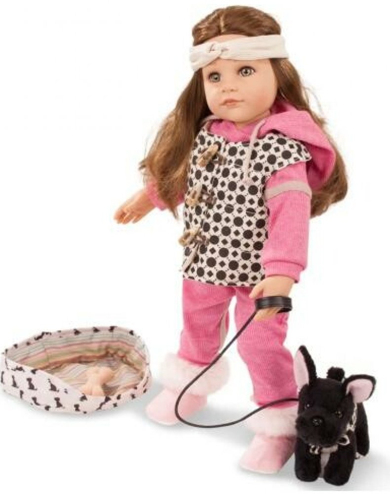 Dlouhé procházky, relax a čtení knihy je to, co Hannah nejvíce miluje ve svém volném čase – a samozřejmě, její malé štěňátko je vždy po jejím boku. Má na sobě svůj oblíbený růžovo-šedý teplákový komplet s kapucí, chladivou vestu a teplé plyšové boty. Nesmí chybět ani stylová čelenka, která dotváří její vzhled. Její malý pes je šťastný z chutné kosti – jaká skvělá odměna! Když je venku chladněji, pejsek nosí bundu se stejným vzorem, jaký najdete na Hannahině vestě. Oba milují sladěné oblečení.Její vysoce expresivní tvář osloví každou maminku panenek. Hannah si získá srdce každé holčičky svou osobností a šarmem. Každá panenka má specifické téma hry a odpovídající doplňky. Hannahin svět hry rozbuší dětská srdce a povzbuzuje kreativitu.Hannah je součástí ručně vyráběné rodiny panenek GÖTZ, které jsou číslované a vyráběné jako limitované edice podle nejvyšších standardů kvality. Její tvář navrhli významní designéři panenek. Každá ručně vyráběná panenka GÖTZ je dodávána s certifikátem autenticity a nese pečeť GÖTZ jako znak kvality. Na tyto panenky používáme jen vysoce kvalitní vlasy s přirozeným vzhledem. Vlasy jsou všity do hlavy panenky, jsou velmi odolné a děti je mohou snadno umývat, česat a upravovat (viz informace o produktu). Kreativitě vašeho dítěte se meze téměř nekladou.Sada obsahuje: