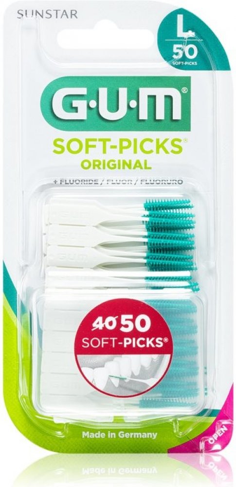 G.U.M Soft-Picks Original, 50 ks, Mezizubní kartáčky unisex, Mezizubní kartáček G.U.M Soft-Picks Original je nedílnou součástí dentální hygieny. Dostane se i do těžce přístupných míst a předchází tak tvorbě zubního kazu. Vlastnosti: postará se o perfektní vyčištění mezizubního prostoru čistí špatně dostupná místa v ústech zaručuje snadnou manipulaci a použití produkt je vhodný i pro použití na imp...