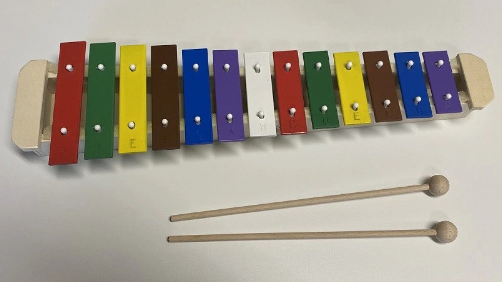 Máme doma zvonkohru hračku, o kterou byl absolutní nezájem, nevzdala jsem to a rozhodla se koupit tuto zvonkohru, která je hudebním nástrojem a má krásný a čistý zvuk – syn si ji hned oblíbil a hraje si na ni svoje melodie a dokonce je ochotný hrát i podle notiček (zatím mu je vybarvuji).