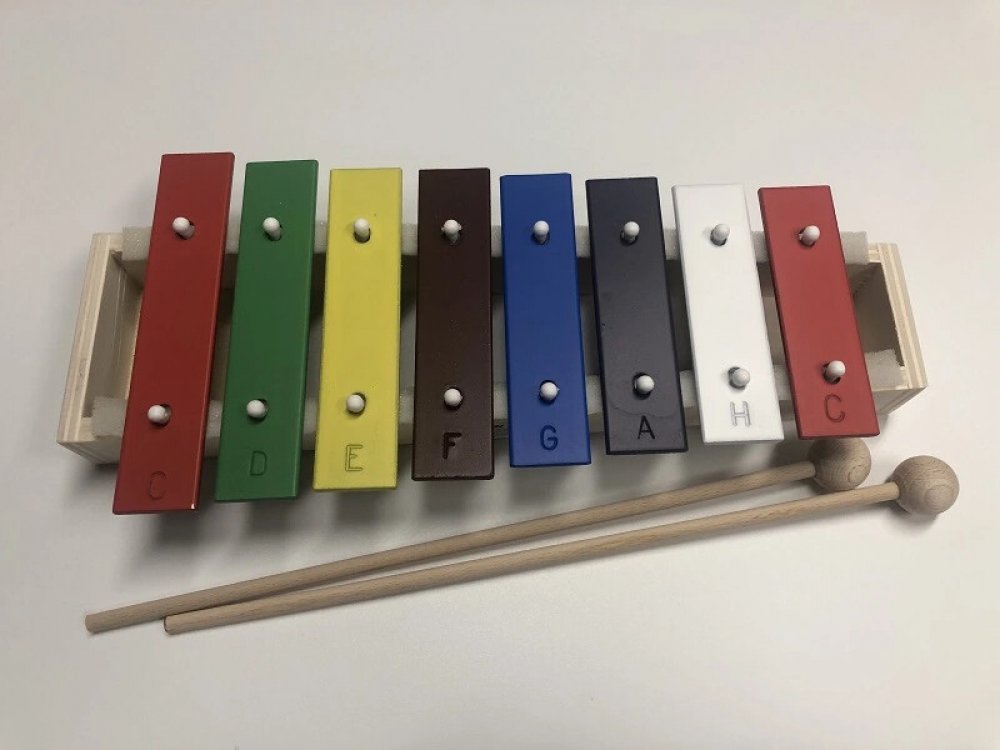 Sopránová zvonkohra pro děti a začátečníky. Rozsah c3–c4 (digitálně naladěná). Obsahuje 8 barevných kovových kamenů o šířce 25 mm. Pořadí barev je evropské. Na kamenech je vyryto písemné označení tónů.