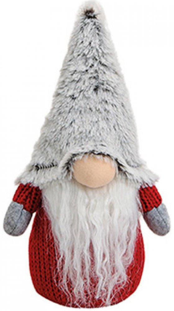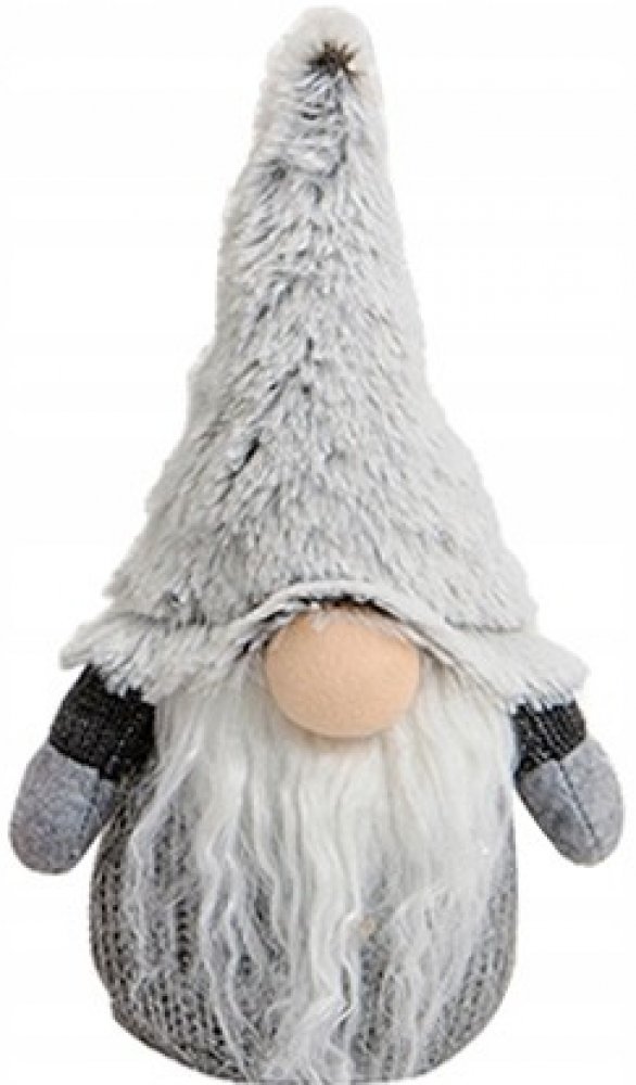 Šedý vánoční skřítek s plyšovou čepicí