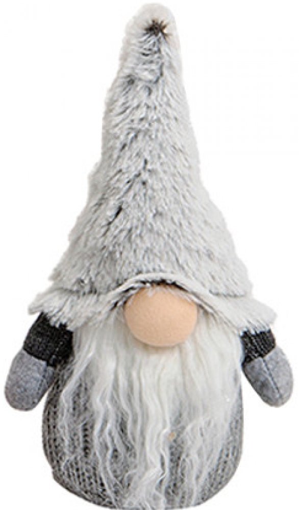 Šedý vánoční skřítek s plyšovou čepicí je krásná dekorace nejen na Vánoce. Tento pěkný pletený skřítek s příjemnou plyšovou čepicí rád ozdobí vaši domácnost během zimních dnů. Výška skřítka je 20 cm. Cena je za 1 kus.