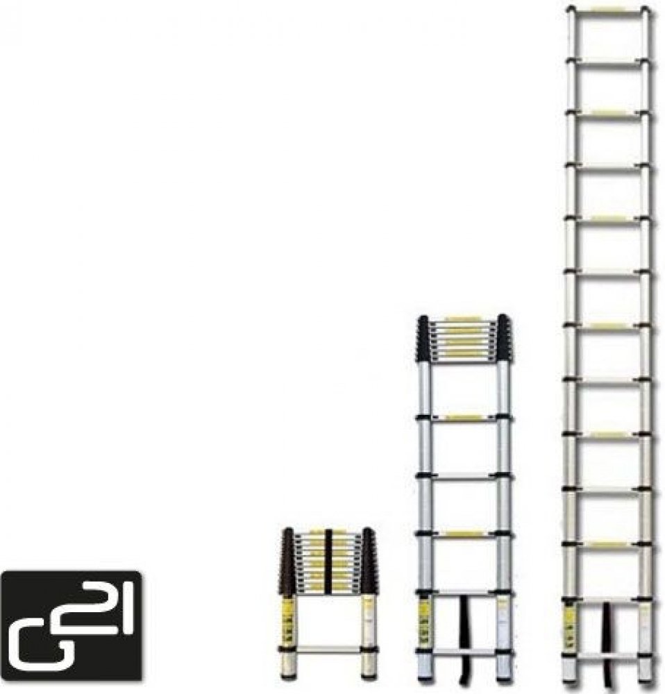 Teleskopický žebřík G21 GA-TZ9-2,6M původně vyvinutý pro profesionály, je špičkový model, který se vyznačuje dostatečně pevnou a odolnou konstrukcí, díky systému duralových profilů. Na jeho konstrukci byly využity lehké hliníkové materiály, které snižují jeho celkovou hmotnost a zároveň zabezpečují složení žebříku do minimální úložné velikosti.