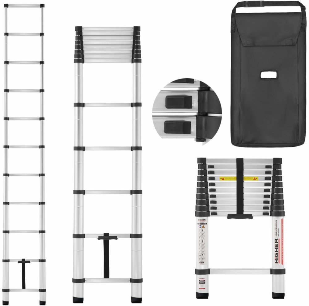 Pokud bojujete ve své dílně nebo v domácnosti s nedostatkem úložného prostoru, je pro vás tento skládací hliníkový teleskopický žebřík ideální volbou! Když je složený, měří pouhých 0,74 m, takže se vám s ním bude i pohodlně manipulovat ať už ho budete přesouvat nebo převážet autem. Jeho konstrukční prvky, stupnice a pojistné zámky jsou provedeny podle ergonomických zásad a podporují tak jeho snadné a intuitivní používání.