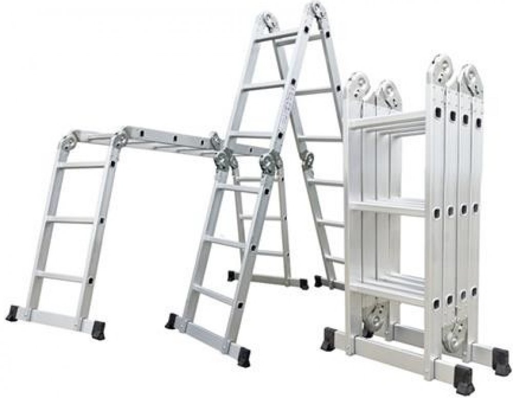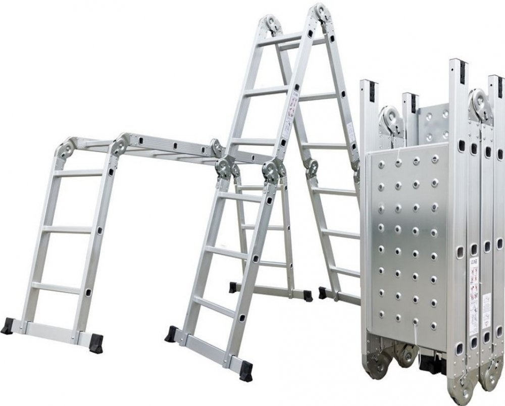 Hliníkové štafle můžete využít jednak jako dlouhý žebřík v délce až 3,7 m. Další variantou je možnost sestavit štafle jako přenosné lešení. Díky konstrukci s klouby lze štafle snadno umístit přes hřeben střechy.