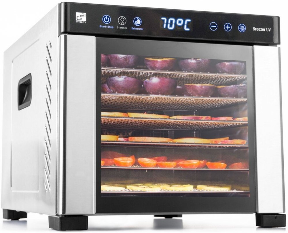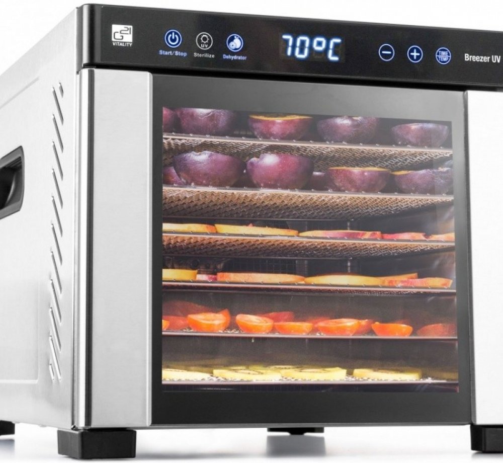 Řídící jednotka sušičky G21 Breezer má dokonale řešenou elektroniku, ovládání je intuitivní a snadné. Časovač hlídá dobu přípravy a po skončení sušení sušičku sám vypne. Regulátor teploty vám dává absolutní kontrolu nad sušícím procesem. Usušte si to, co chcete, přesně tak, jak to chcete.