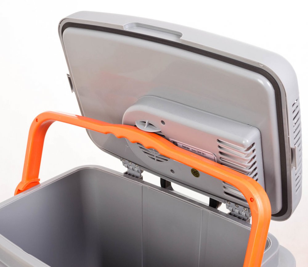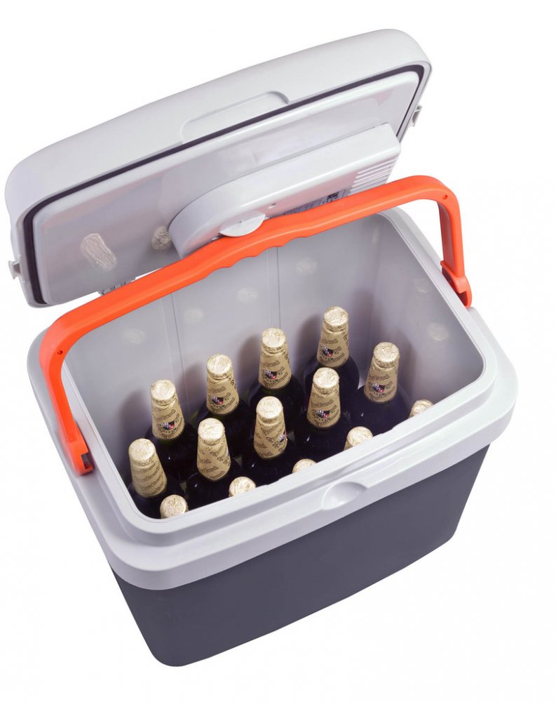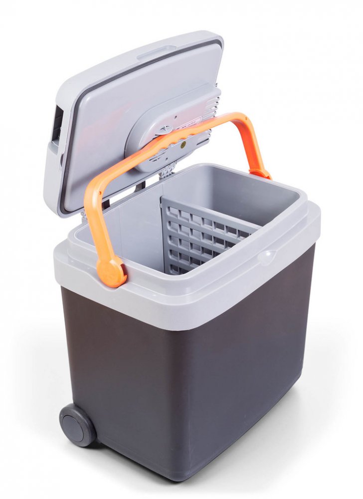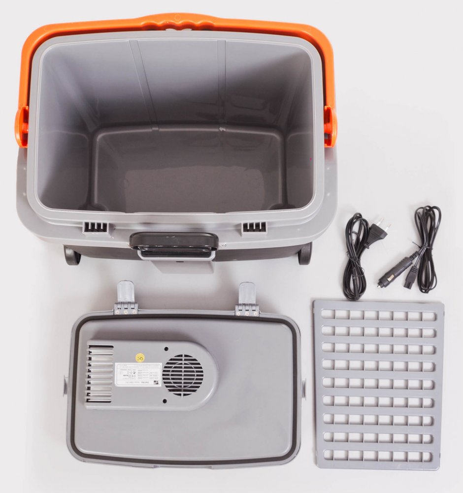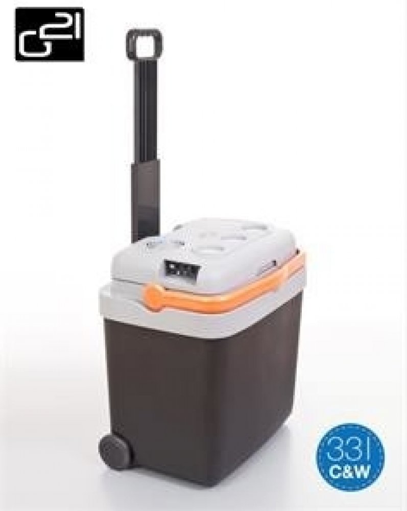 Autochladnička G21 C&W o objemu 33 l vás zaujme atraktivním vzhledem a výkonným chlazením. Tato chladnička do auta ochladí vaše potraviny až o 18°C oproti okolní teplotě, a to díky přídavnému ventilátoru a vysoce kvalitní izolaci. Autochladnička disponuje přihrádkou pro kabel a vnitřním i vnějším ventilátorem. Další užitečnou vlastností autochladničky G21 C&W je možnost ohřevu až na 55°C, můžete ji tudíž využít i v zimě a uchovat v ní potraviny v teple. Lednička do auta může být připojena do elektrické sítě s napětím 220 – 240 V nebo 12 V. Do autochladničky lze uskladnit až 50 plechovek o objemu 355 ml / 20 PET lahví o objemu 0,5 l / 9 PET lahví o objemu 1,5 l / 6 PET lahví o objemu 2 l. Praktická kolečka a madlo usnadňují veškerou manipulaci. Parametry: Objem: 33 l Barva: Šedá Rozměry (délka x šířka x výška): 460 x 320 x 480 mm Normy/zkušební značky: CE · TÜV Hmotnost: 6 kg Kolečka pro snadný přesun Madlo pro snadný úchop Obsah balení: Autochladnička 33 l Kabel na napájení (12 V, 230 V)