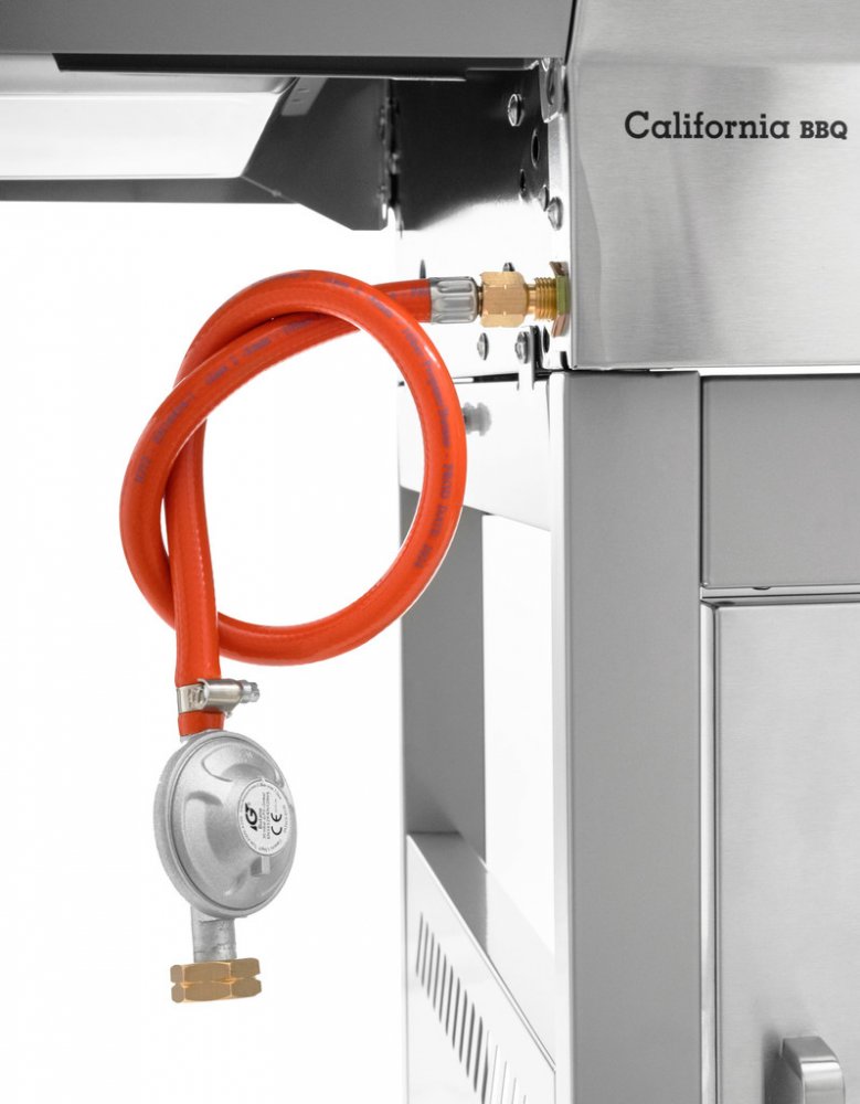 Plynový gril G21 California BBQ Premium Line je vybaven systémem Flame Tamer a litinovým roštem, bočním a třemi hlavními nerezovými hořáky s elektrickým zapalováním a plynovou regulací, každý o maximálním výkonu 3,15 kW.
