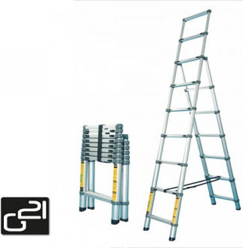 Teleskopický žebřík G21 GA-TZ12-3,8M původně vyvinutý pro profesionály, je špičkový model, který se vyznačuje dostatečně pevnou a odolnou konstrukcí, díky systému duralových profilů. Na jeho konstrukci byly využity lehké hliníkové materiály, které snižují jeho celkovou hmotnost a zároveň zabezpečují složení žebříku do minimální úložné velikosti.