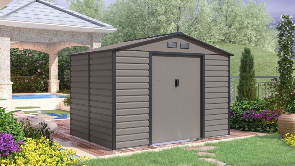 Zahradní domek G21 GAH 529 je ideální pro celoroční uskladnění zahradního nářadí, nábytku, motorek, sekaček, křovinořezů, jízdních kol, příslušenství k bazénu a dalších věcí, které se vám například nevejdou do úložného prostoru v domě. Zahradní domek na nářadí má dvoje velké posuvné dveře a vysoký vstupní otvor, tudíž do něj budete mít pohodlný přístup. Tyto plechové zahradní domky G21 doporučujeme instalovat na dlážděnou nebo betonovou terasu, popřípadě na předpřipravený povrch, jakým je například dřevěná podlaha, deska atd. Zahradní domek G21 GAH 529 je vyroben z kvalitního profilovaného ocelového plechu tloušťky 0,25 – 0,30 mm. Je žárově pozinkovaný a má práškový nástřik. Jeho konstrukce je rovněž ocelová a pozinkovaná. Na pevný pozinkovaný rám přimontujete ocelový, žárově pozinkovaný plech s práškovým nástřikem, který je odolný vůči špatnému počasí. Montáž domku je velmi jednoduchá. Součástí domku jsou dveřní úchyty, které zajišťují možnost jeho uzamčení. Střecha zahradního domku je bezpečná při maximálním zatížení sněhem do 90kg/m2. Plechový zahradní domek na nářadí má moderní design a je dodáván v kartonové bedně. Záruka kvality! - 10 let záruka na prorezavění! Výška zdi bez střechy je 163 cm. Na přední straně se nachází dveře.Technické údaje:rozměry vnější: 277 x 198 x 191 cm (š x v x h)rozměry vnitřní: 267 x 193 x 181 cm (š x v x h)rozměr dveří: 117 x 160 cm váha: cca 80 kgbarevné provedení: šedé Obsah balení:1 x zahradní domek montážní návod v českém jazyce