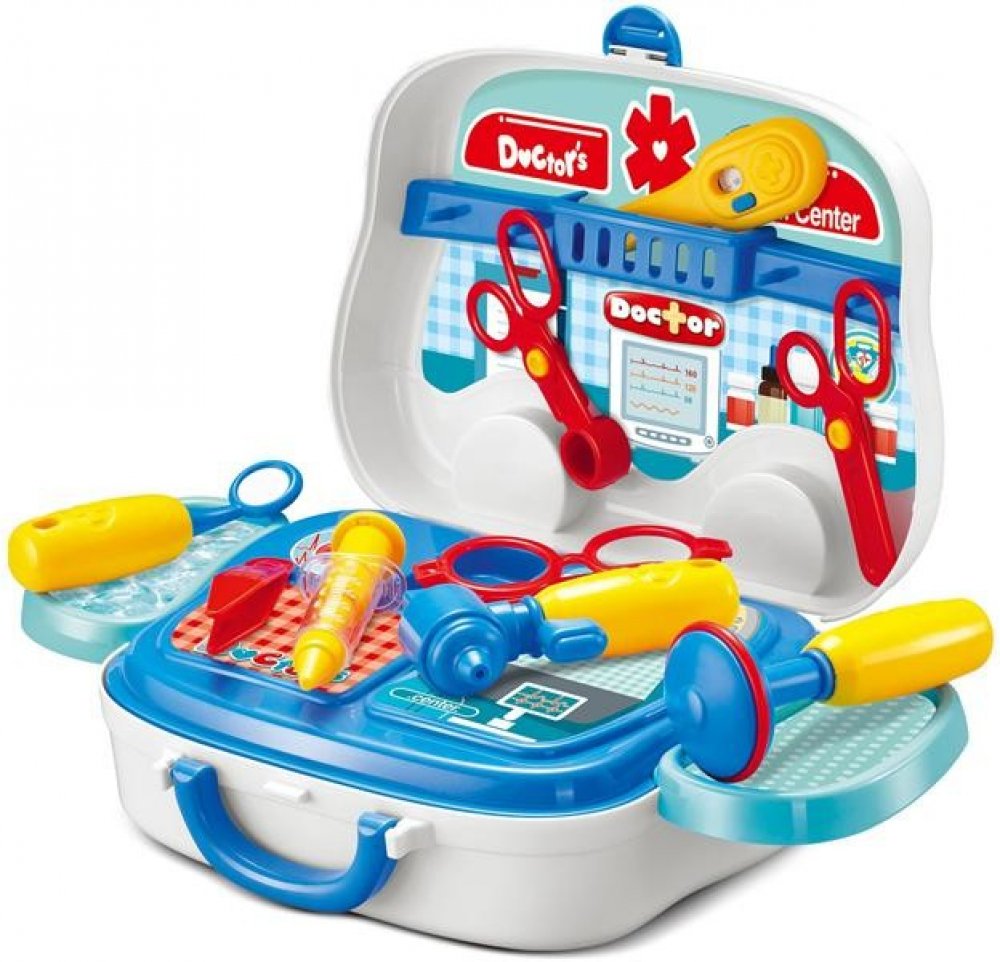 Návštěva doktora nemusí znamenat jen strach z injekcí. Představujeme vám Hrací set G21 Dětský doktor.Sedátko s doktorským vybavením 2v1 je super doplňkem do každého dětského pokojíčku. Slouží jako malá židlička a uvnitř se skrývá celá sada pro malé lékaře.Hru doporučujeme pro záchranáře od 3 let. Rozvíjí jemnou motoriku, socializační a komunikační dovednosti.Specifikace:Sedátko a hrací sada 2v1Materiál: plastBarva: modráRozměry: 47 cm x 37,5 cm x 26,5 cmRozměry balení: 39 x 27 x 19 cmHmotnost balení: 1 kgVěkové doporučení: 3+Výrobce: G21Obsah balení:1x kufřík s držadlem2x odnímatelné poličky1x stetoskop1x lékařské kukátko1x lékařské zrcátko1x lékařské kladívko1x pinzeta1x nůžky1x brýle1x teploměrUvnitř kufříku nalepené hodiny