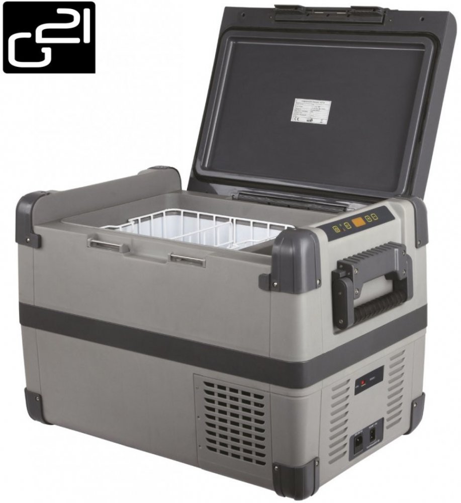 Kompresorová autochladnička G21 s objemem 60 l je postavena na kompresorové technologii, která zabezpečuje dostatečné ochlazení na nejnižší teplotu přibližně za jednu hodinu. Tato chladnička do auta vám zaručí, že udržíte vaše potraviny v chladu. Oceníte ji zejména na cestách, během kempování, při plavbě lodí a podobně. Kompresorové autochladničky G21 mají odnímatelné víko, které můžete otevřít z levé i z pravé strany. Lednička do auta má pogumovaná držadla, která vám zajistí jednodušší a snadnější manipulaci. Díky vysoce kvalitní izolaci udržíte potraviny a nápoje chladné ještě několik hodin po odpojení napájení. Chladnička má rozsah chlazení od -20 °C do + 10 °C. Parametry:Výkon: 63 WKompresor: DanfossNapětí: DC 12/24 V + AC 100-240 V Objem: 60 l Rozměry: 73 x 52 x 45 cmVnitřní rozměry: 55,5 x 41 x 34 cmVáha: 25 kg Obsah balení:Autochladnička 60 l