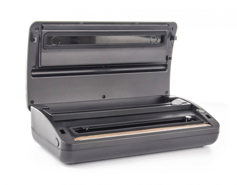 Vakuovačka se zásobníkem na fólii a duální pumpou pro spolehlivé zavakuování potravin. Funkce marinování, dvojité sváry, pro fólie do šířky 28 cm.