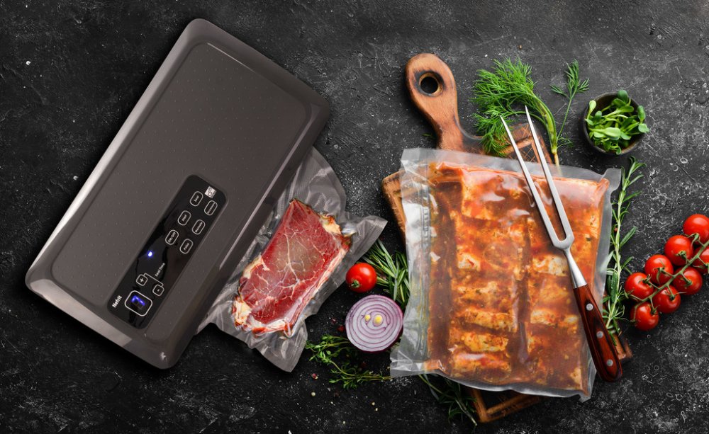 Vakuovačka G21 Nefrit se zabudovaným zásobníkem fólie a řezačkou si už po prvním použití získá vaši oblibu. Pracuje na profesionální úrovni, je velice výkonná a spolehlivá. Duální pumpa zajistí dokonalé odsátí vzduchu a speciální dvojité sváry obal na zavakuované surovině spolehlivě utěsní. Maso nebo další suroviny, připravené pro vaření metodou sous-vide, jsou tak ve vakuu chráněny před působením vzduchu a výsledek bude chuťově dokonalý, voňavý, bez ztráty přirozených šťáv, chutí nebo barev.