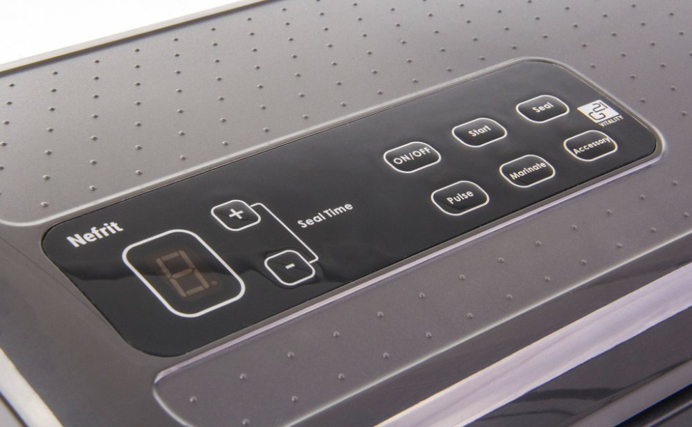 Vakuovačka G21 Nefrit umí nejen potraviny zavakuovat a zatavit vakuovací obal, ale umožňuje i manuální odsání vzduchu pomocí funkce Pulse Vakuum nebo nastavení doby tavení podle typu svařované folie. Velkou výhodou u této vakuovačky je umístění fólie v zabudovaném zásobníku uvnitř vakuovačky.