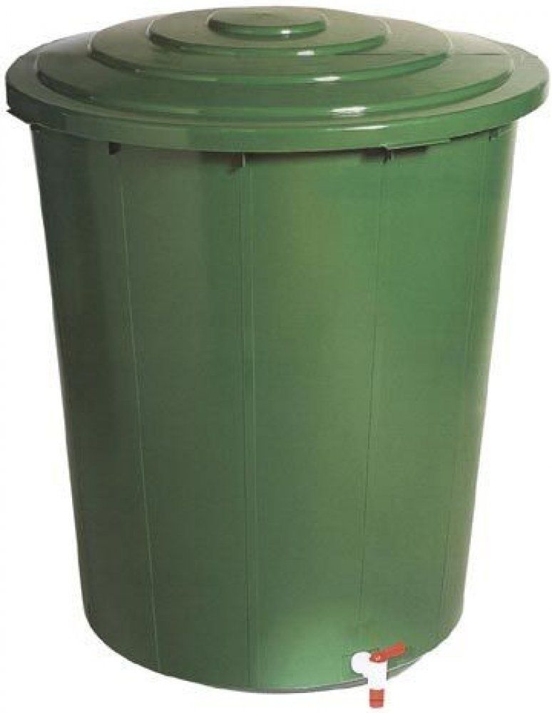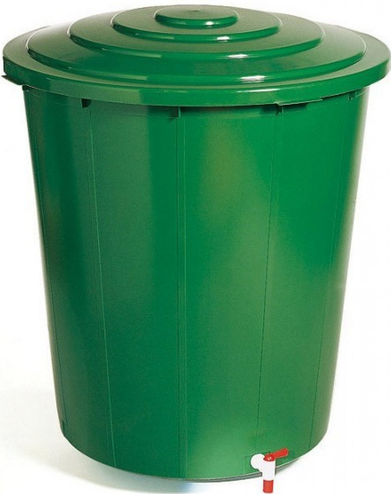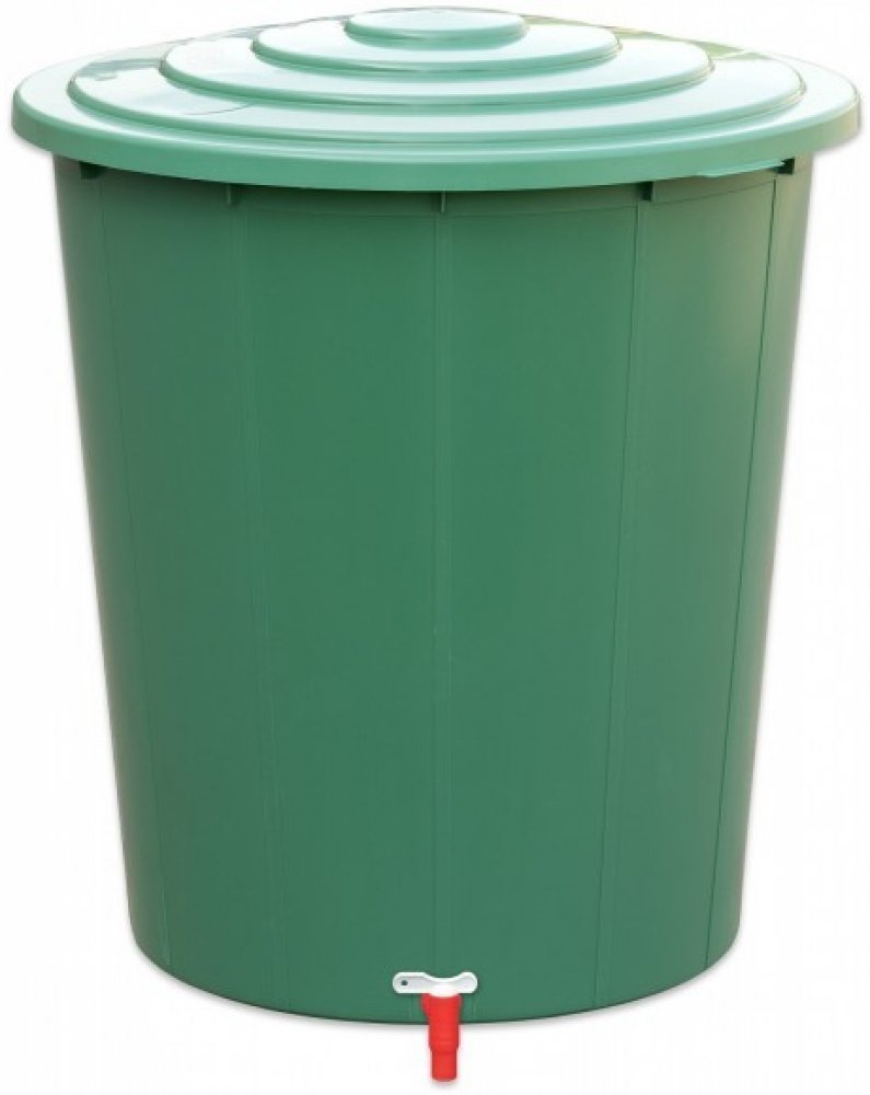 Plastový sud na dešťovou vodu komplet s víkem a výpustním kohoutkem pro snadné vypouštění vody.