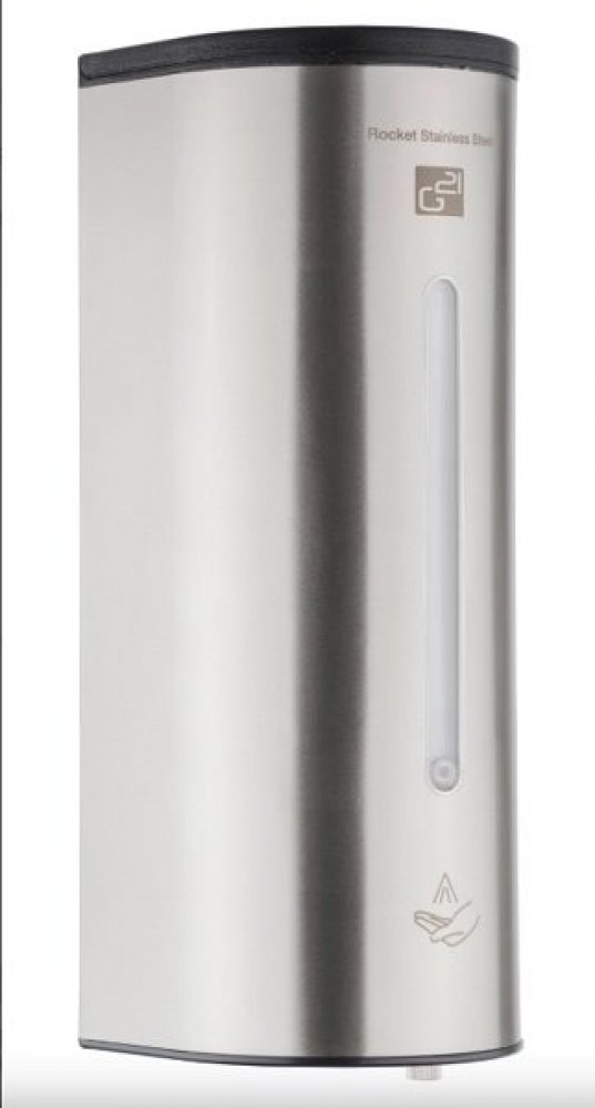 Bezdotykový dávkovač rukou G21 Rocket je nezbytným hygienickým doplňkem pro obchody i restaurace, služby, dílny, sklady nebo kanceláře. Jeho velkou výhodou je nezávislost na elektrické zásuvce, nerezové provedení, nastavitelné dávkování a kapacita 1 l.
