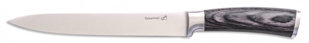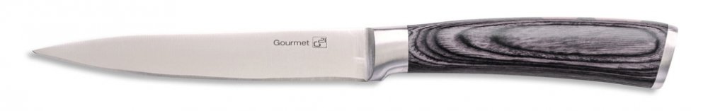 V sadě nožů Gourmet Rustic najdete nůž šéfkuchaře 21 cm, krájecí nůž 21 cm, nůž na chléb 21 cm, univerzální nůž 13 cm a krájecí nůž 9 cm. Všech 5 nožů je z kvalitní oceli, která se používá i pro výrobu loveckých nožů. Díky použitému materiálu je čepel ostrá, odolná, pevná a bude sloužit dlouhé roky. Správná péče o kuchyňské nože však ještě prodlouží jejich životnost a ostrost čepelí. Základem je vhodné ukládání – ideálně do stojanu na nože, který je vyroben z vysoce odolného bambusového dřeva s elegantní černou kovovou lištou na čelní straně stojanu na nože. Rukojeti jsou vyrobeny z extra pevného, odolného materiálu, při jehož výrobě je dýha z tvrdého dřeva napuštěna teplem tvrzenou pryskyřicí. Výsledkem jsou pevné rukojeti, které nepodléhají zkáze času. Hladké, rovné, čisté linie těchto nožů se stanou ozdobou každé kuchyně.Technické údaje:materiál: ocel 5CR15materiál rukojetí: Pakka wood v černé barvěmateriál stojánku: bambusvýška stojanu s noži: 22 cmšířka stojanu: 15 cmhloubka stojanu: 9 cmhmotnost: 3 kgpočet nožů v sadě: 5 ksObsah balení:1 x nůž šéfkuchaře: 21 cm1 x krájecí nůž: 21 cm1 x nůž na chléb: 21 cm1 x univerzální nůž: 13 cm1 x krájecí nůž: 9 cm1 x stojancertifikace: LFGBrozměry balení: 36 x 19 x 10 cm