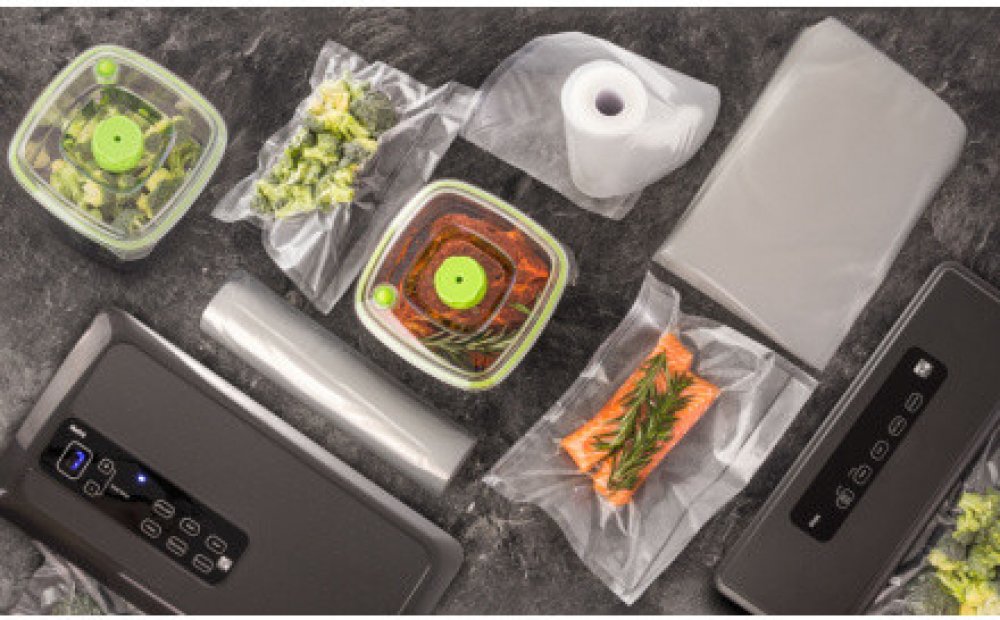 Pokud máte vakuovací svářečku G21 Nefrit se zásobníkem na fólii a vestavěnou řezačkou, je použití vakuovací fólie v roli ještě snadnější – délku fólie si upravíte pomocí řezačky.