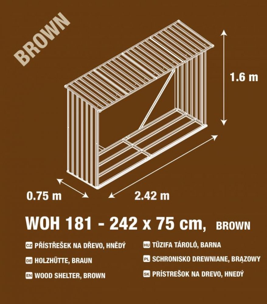 Přístřešek na dřevo G21 WOH 181 - 242 x 75 cm, hnědý