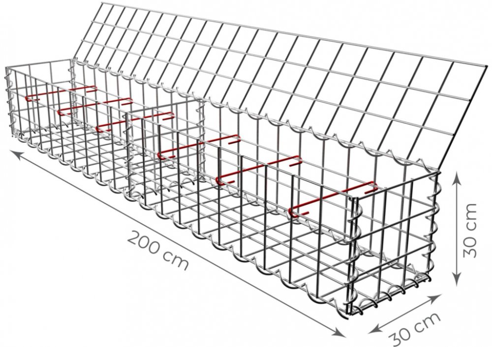 Gabionový koš bez víka 200 x 30 x 30 cm - oko sítě 10x10 cm