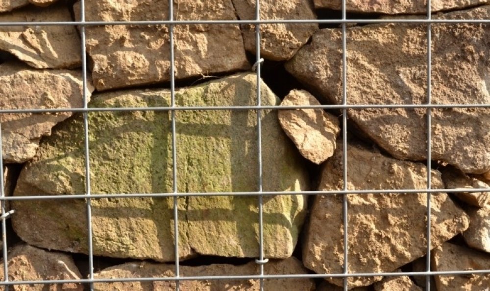Gabionový pilíř je na místě realizace kompletován z jednotlivých prvků pro stavbu gabionu (sítí, spirál, táhel) připravených pro se...
