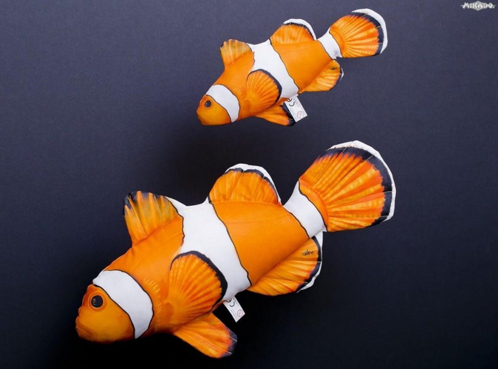 Plyšový polštářek Klaun očkatý - délka 32cm. Polštář vyrobený výhradně z polyesterových anti alergických materiálů. Potah je měkký a velice příjemný, výplň je polyesterový vatelin používaný v polštářích. Velice líbivý a vděčný dárek nejen pro rybáře, ale i všechny děti. Představujeme Vám novou kolekci výrobků. Plyšové polštářky jsou vyrobeny z materiálu polyester hypoalergenní. Nátěrová hmota je měkká a náplň je polyesterová vata. Unikátní umělecké dílo bylo provedeno absolventy výtvarných umění v Krakově. Je zde připraveno několik druhů ryb, s kterými se většina z nás setkala. Jsou zobrazeny ve velmi jemném barevném provedení a přirozené podobě. -