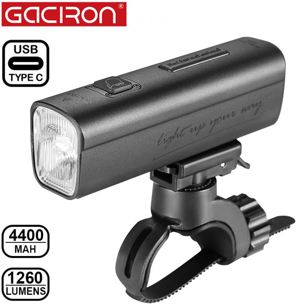 Velmi silné přední světlo Gaciron Kiwi-1200 s nabíjením přes USB-C je špičkovým předním světlem značky Gaciron. Světlo disponuje maximálním světelným výkonem až 1200 lumenů a integrovanou baterií o kapacitě 4400mAh. Velmi silné světlo vhodné na noční jízdy v terénu a jízdy v temných cestách a temných silnicích.
