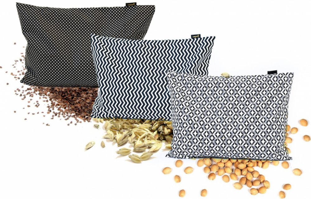 Polštářek z pohankových slupek je tvrdší, ze špaldových slupek naopak měkčí.