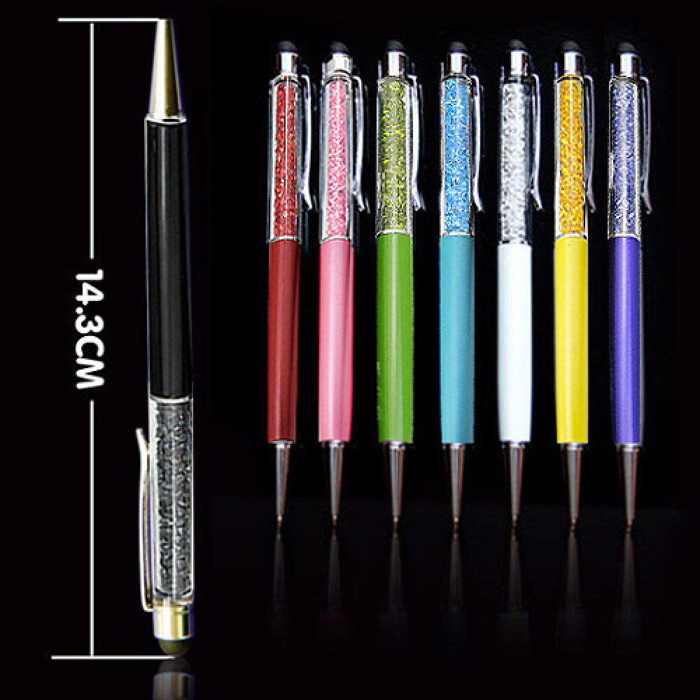 Kapacitní stylus pro chytrý mobilní telefon (smartphone) či tablet a kuličkové pero (propiska) v jednom. V těle pera jsou třpytivé krystalky (kamínky), které dávají tomuto gadgetu skutečně elegantní, atraktivní vzhled. Výběr barev. Již nebudete potřebovat dva předměty, abyste si zapsali poznámku do diáře a pak vyhledali něco na internetu.