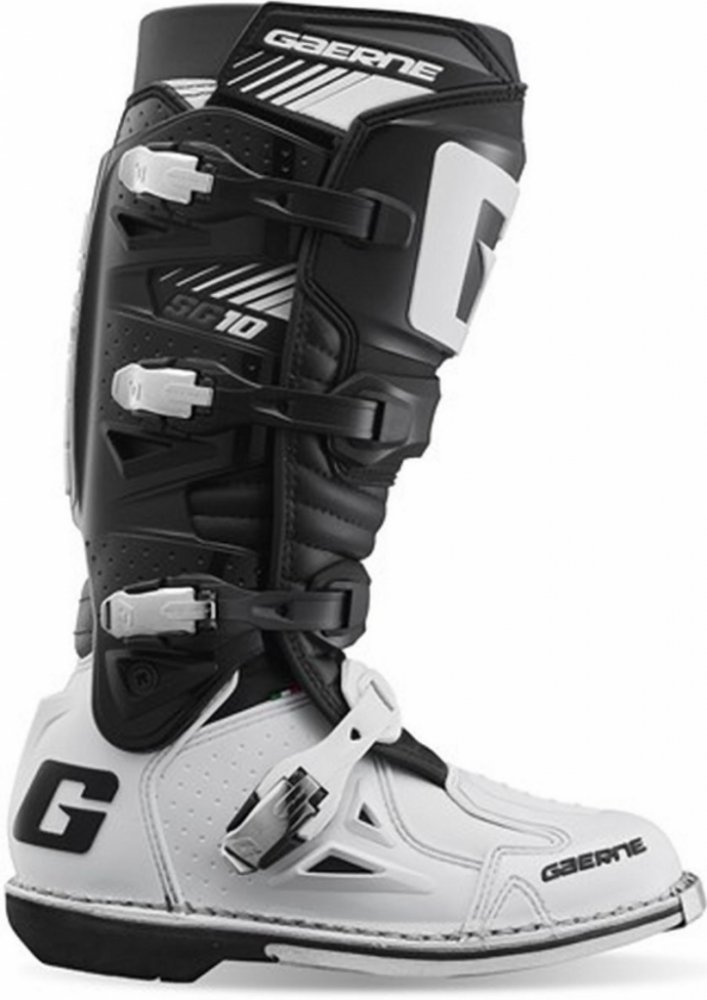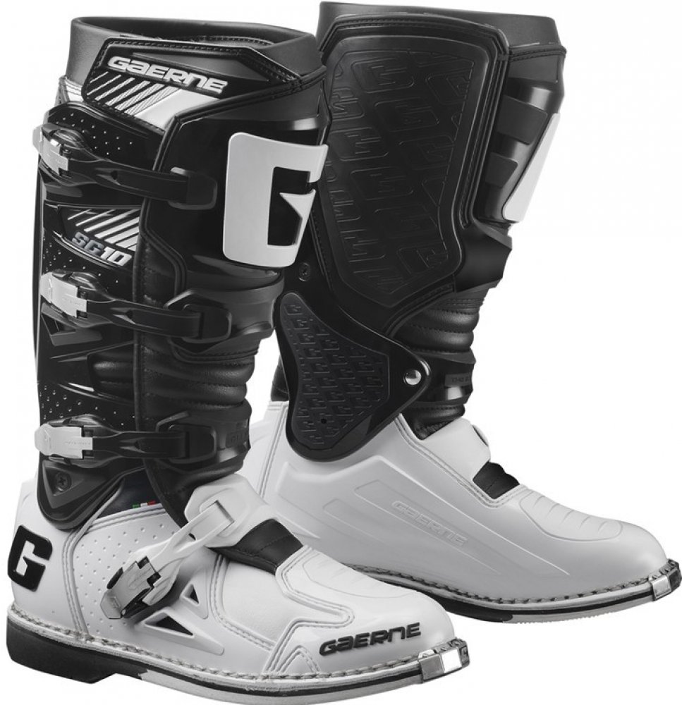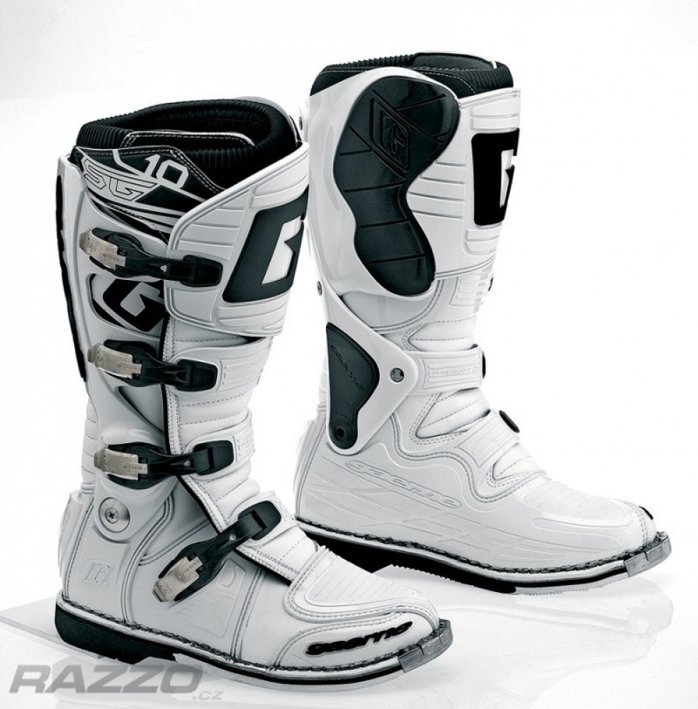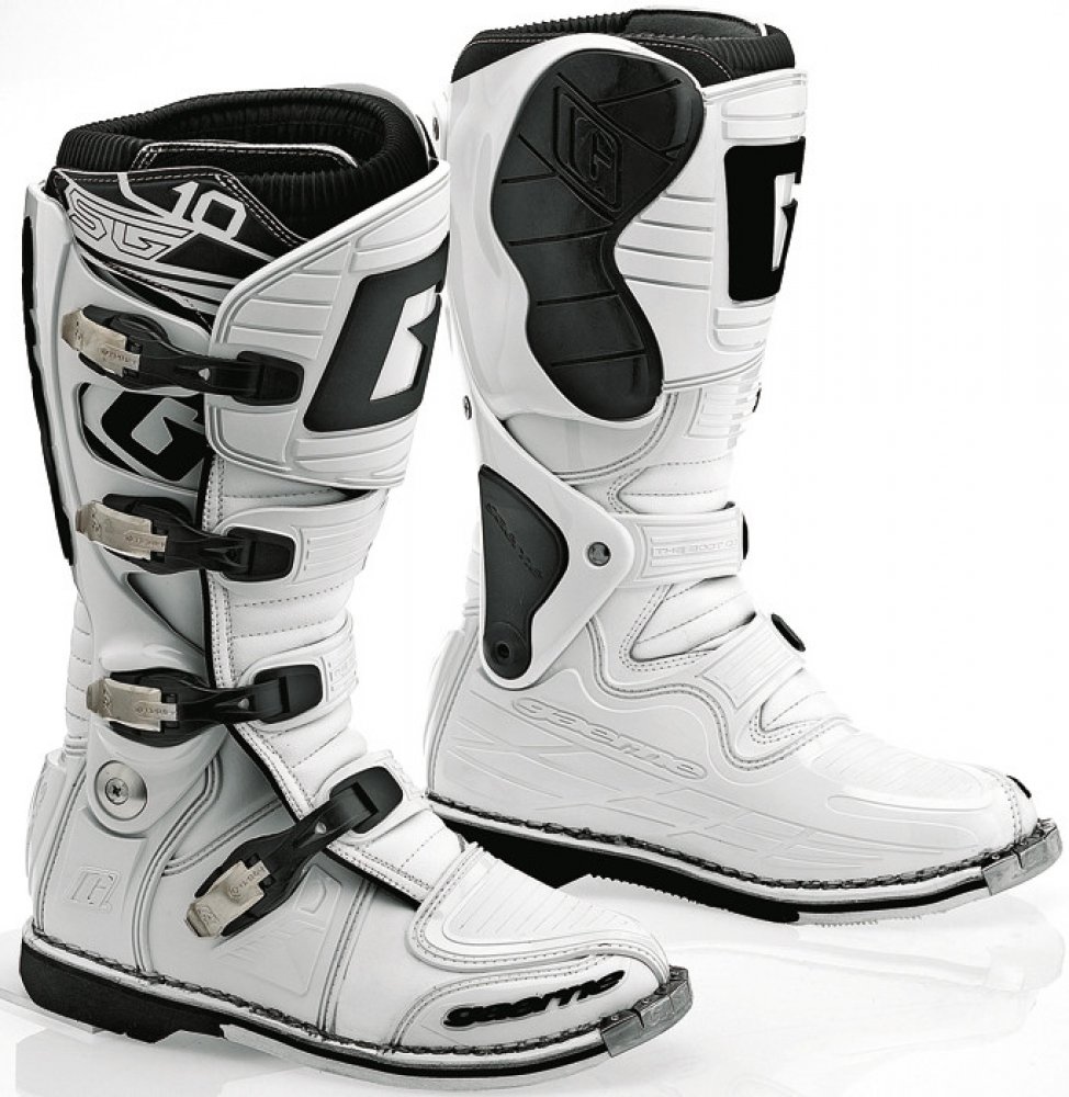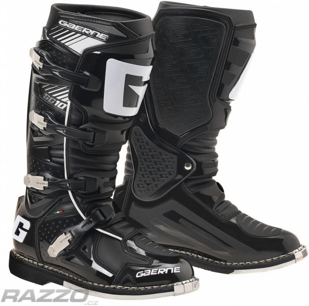 Gaerne SG10 jsou propracované špičkové závodní boty s kloubem pro motokros a enduro. Boty Gaerne SG10 jsou navržené s ohledem na požadavky špičkových jezdců na komfort, bezpečnost a životnost. Poskytující maximální ochranu před případnými zraněními díky patentovanému systému dvouosého kloubového uložení a propracovanému oplastování na důležitých místech. Gaerne SG 10 jsou boty se skvělou životností a tím Vám ušetří Vaše prostředky. Gaerne SG 10je vyrobena z vysoce kvalitní full-grain kůže s přední holenní částí a kotníkem/patou ve tvaru injekce. Všechny čtyři hliníkové přezky je možné vyměnit. Řemínky v přezkách jsou nastavitelné. Kryt vyroben z kůže určené do ztížených podmínek k ochraně před teplem udržuje pocit chladu a kamaše Lorica nepropouští nečistoty. Určeno především pro špičkový sport, poskytující maximální ochranu před případnými zraněními. Zároveň svým patentovaným systémem dvoukloubového uložení a gelové vnitřní boty poskytují značné pohodlí i pro celodenní akce.