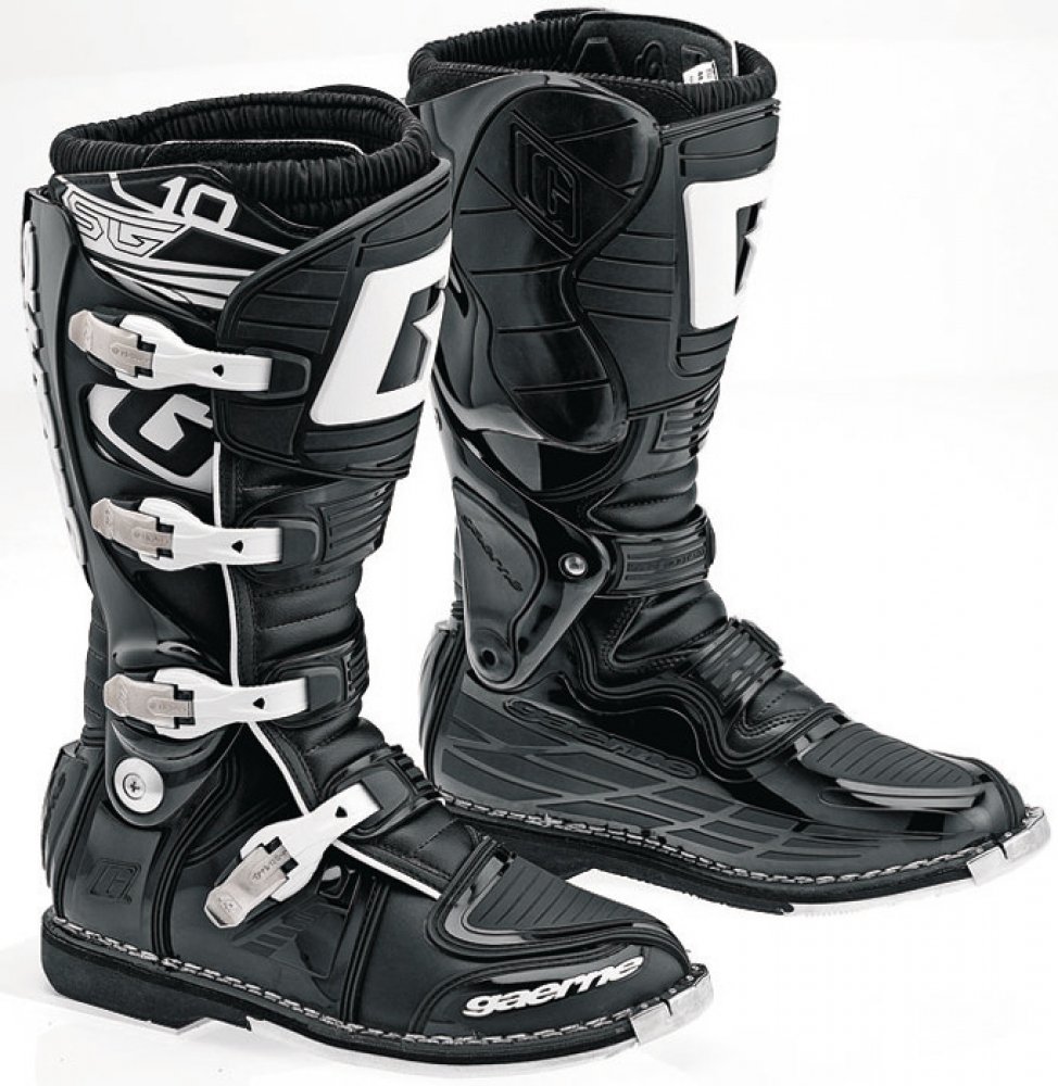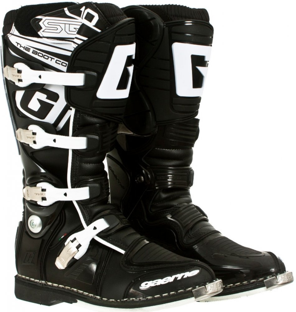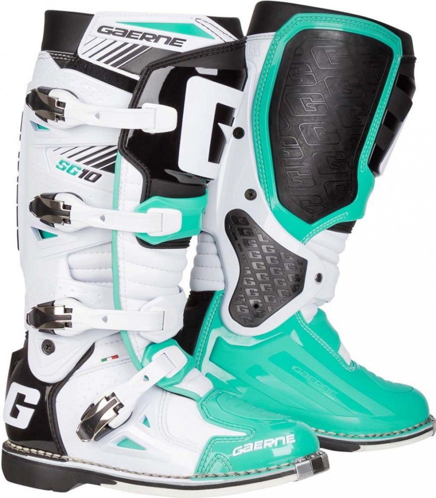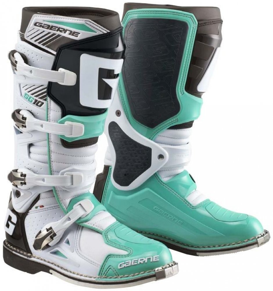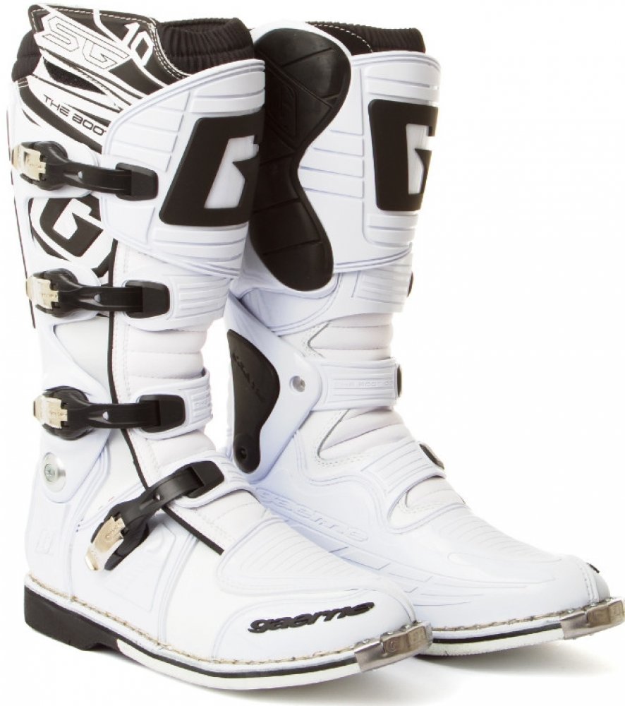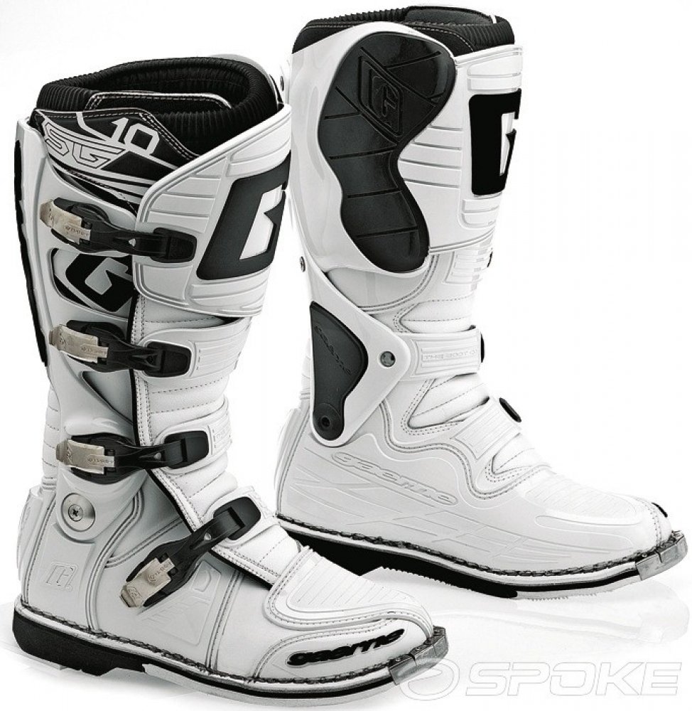 Gaerne SG10 jsou propracované špičkové závodní boty s kloubem pro motokros a enduro. Boty Gaerne SG10 jsou navržené s ohledem na požadavky špičkových jezdců na komfort, bezpečnost a životnost. Poskytující maximální ochranu před případnými zraněními díky patentovanému systému dvouosého kloubového uložení a propracovanému oplastování na důležitých místech. Gaerne SG 10 jsou boty se skvělou životností a tím Vám ušetří Vaše prostředky. Gaerne SG 10je vyrobena z vysoce kvalitní full-grain kůže s přední holenní částí a kotníkem/patou ve tvaru injekce. Všechny čtyři hliníkové přezky je možné vyměnit. Řemínky v přezkách jsou nastavitelné. Kryt vyroben z kůže určené do ztížených podmínek k ochraně před teplem udržuje pocit chladu a kamaše Lorica nepropouští nečistoty. Určeno především pro špičkový sport, poskytující maximální ochranu před případnými zraněními. Zároveň svým patentovaným systémem dvoukloubového uložení a gelové vnitřní boty poskytují značné pohodlí i pro celodenní akce.