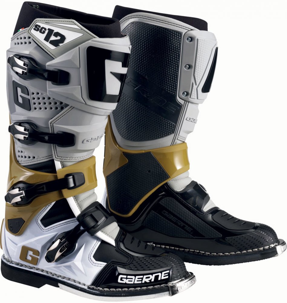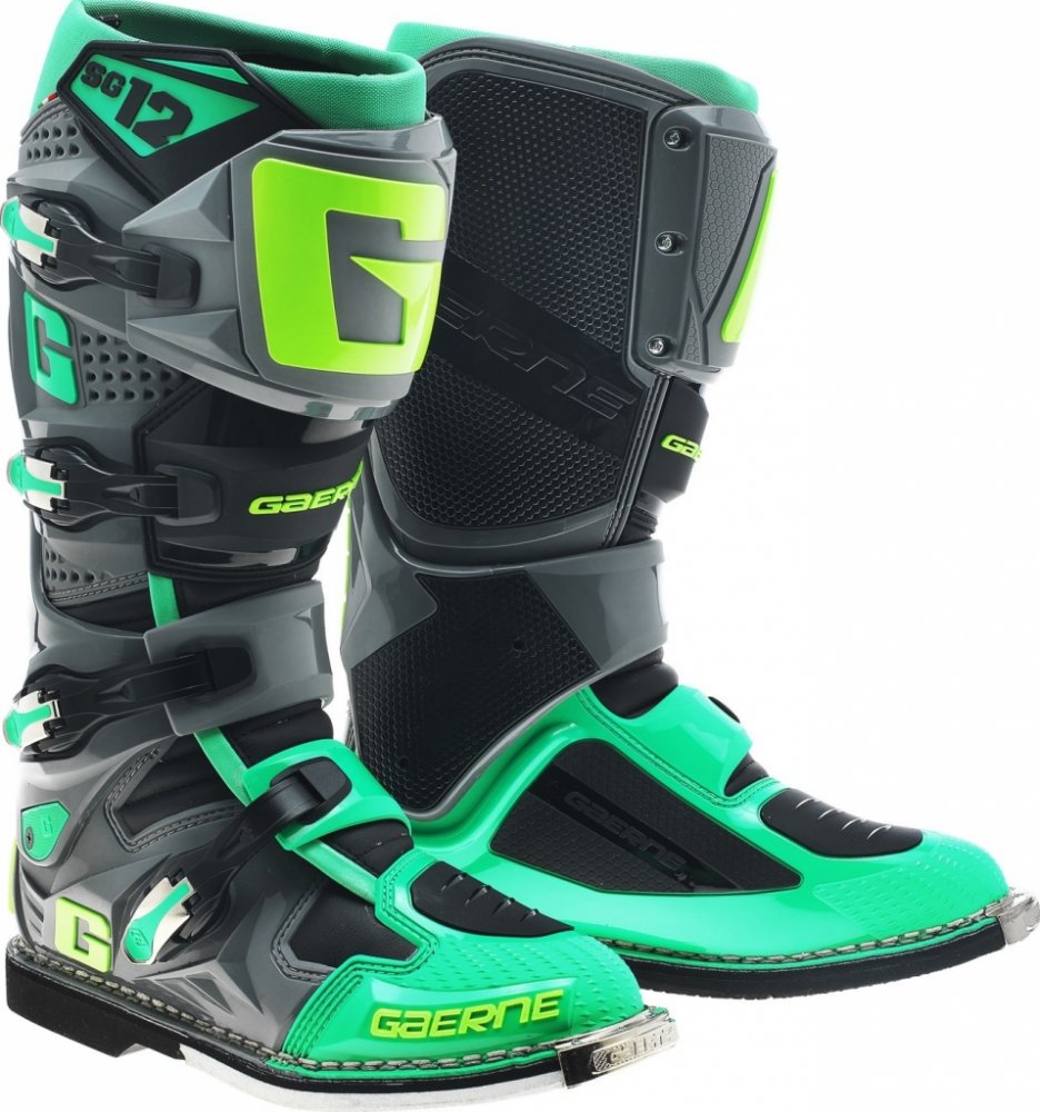 Gaerne SG12 to jsou ultimativní boty pro motokros a enduro. Od svého představení znají srovnávací testy jediného vítěze - SG12. Určeno především pro špičkový sport, poskytující maximální ochranu před případnými zraněními. Zároveň svým patentovaným systémem dvoukloubového uložení a gelové vnitřní boty poskytují značné pohodlí i pro celodenní akce. ,
