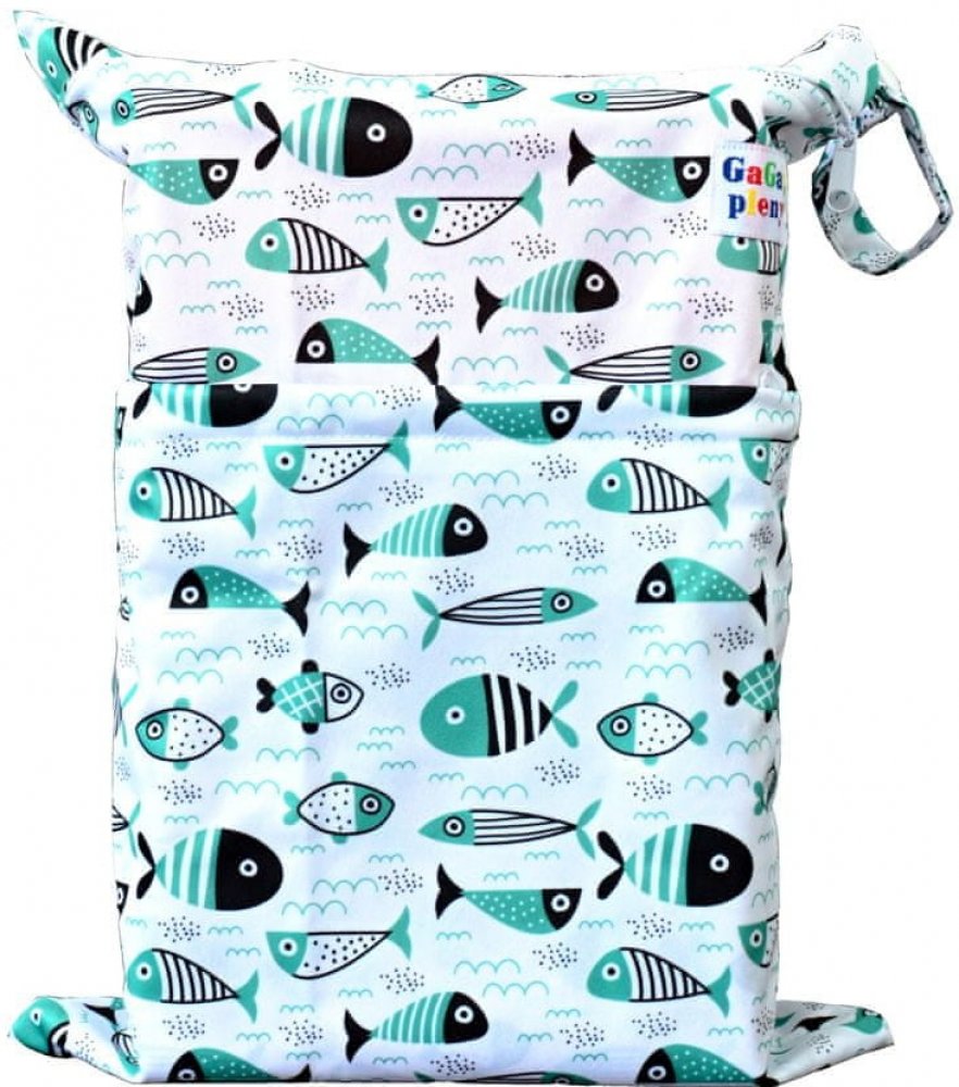 Klíčové vlastnosti produktu GaGa's Nepromokavý pytel na pleny Fish Opakovatelně použitelné sáčky na pleny GaGa's pleny zajišťují efektivní hygienické uskladnění plen nebo ubrousků Jsou vyrobeny z polyesteru, který je odolný vůči opotřebení a roztržení Po vyprání v pračce budou opět čisté a připravené k dalšímu použití Balení obsahuje jeden kus S hravým motivem zvířátek