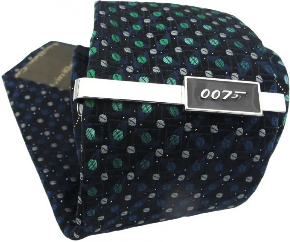 Spona na kravatu agenta 007 s klipem pro snadné uchycení. Spona by neměla přesahovat přes celou šířku kravaty. Optimální je, aby končila někde v polovině nebo třech čtvrtinách její šířky. Záleží však na střihu jednotlivých kravat.